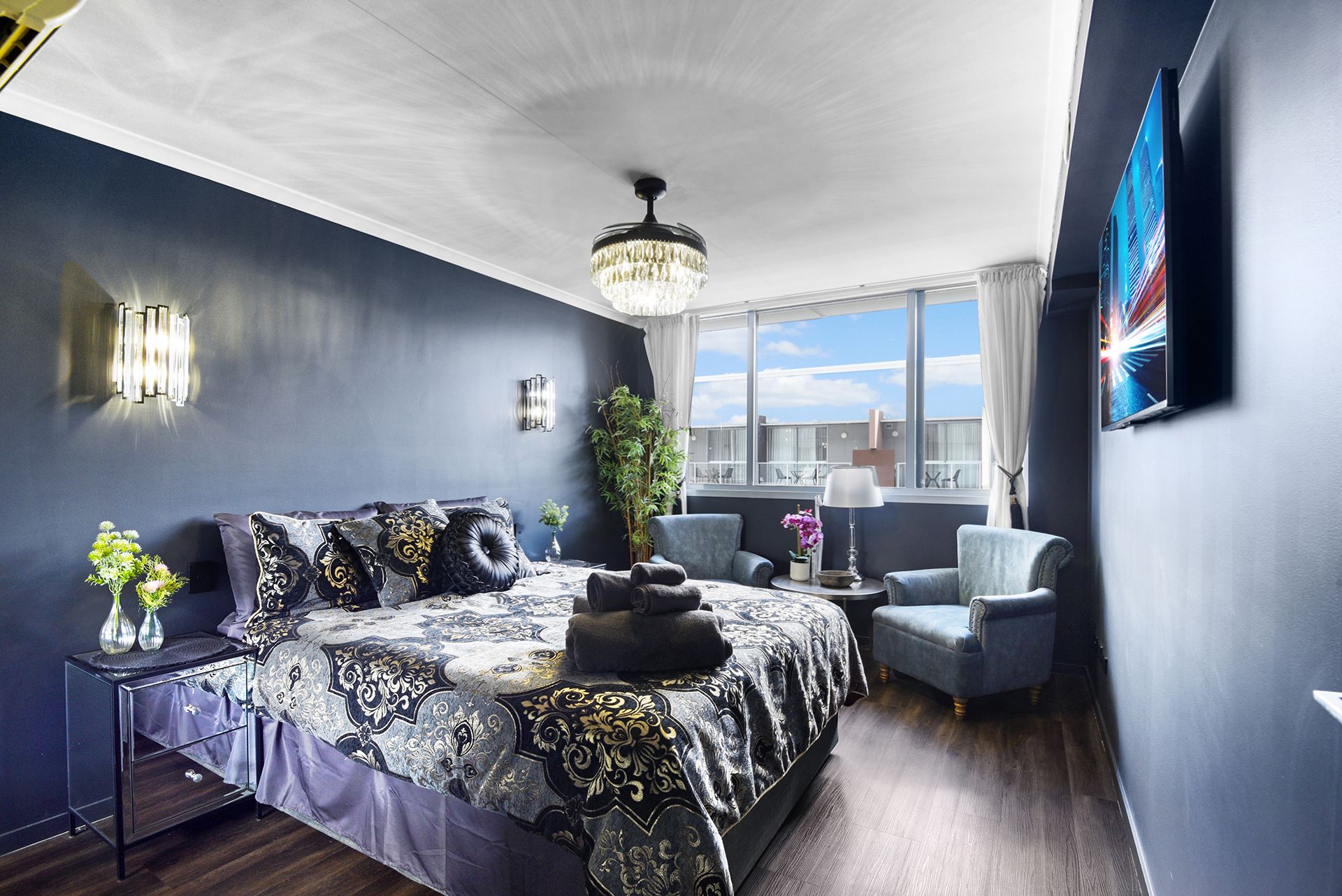 This air-conditioned apartment offers a stylish kitchenette with single sink, cooktop, microwave and fridge, a large bedroom/sitting area with double bed wall mounted LCD TV, built in wardrobe and bathroom with walk-in shower.