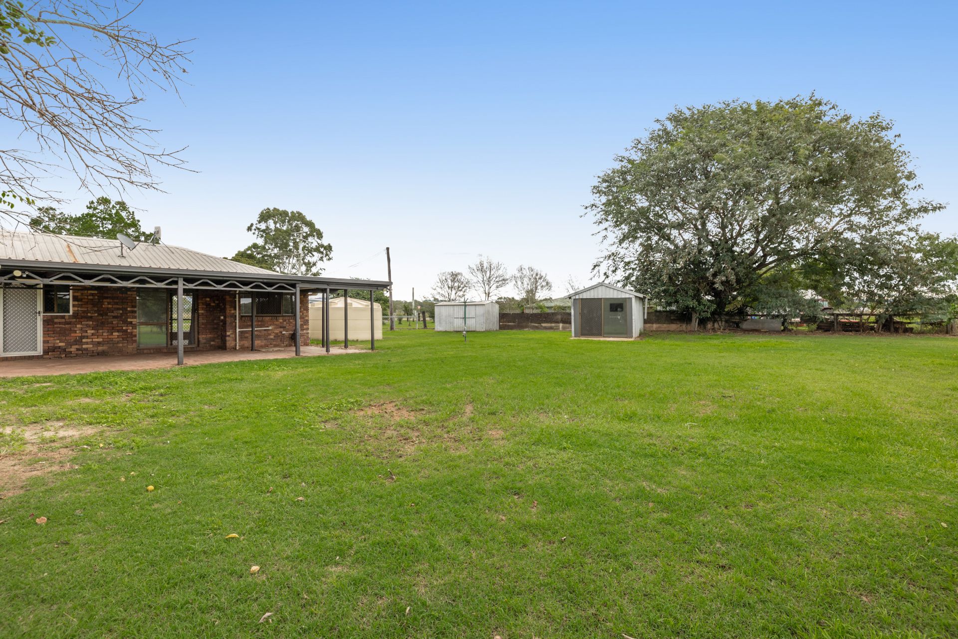 Outdoors, the property is ready for a small-scale rural lifestyle. The powered sheds, lawn locker, and triple carport provide ample storage and workspace, while the back paddock and reliable bore make it ideal for keeping horses or a few head of cattle.
