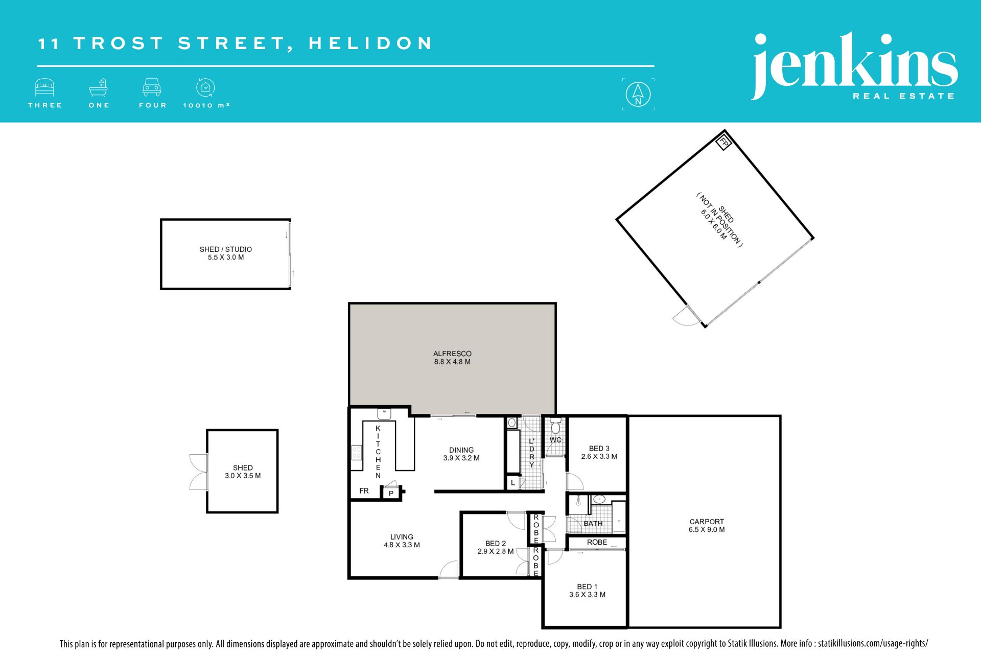 • 6m x 3m powered shed/studio – ideal for a hobby space or home office