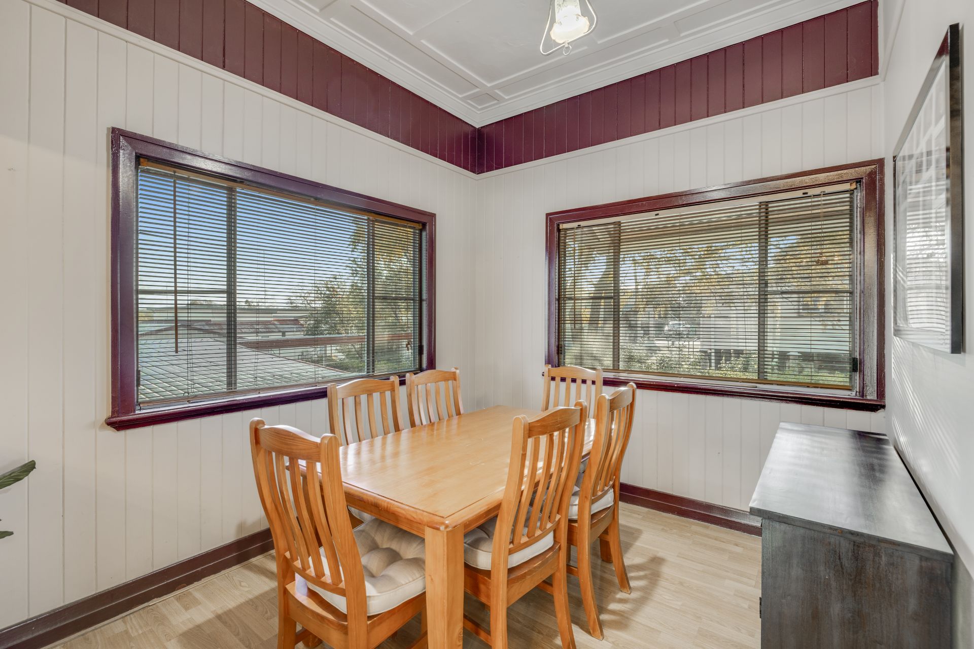 High ceilings, VJ walls, picture rails and ornate ceilings