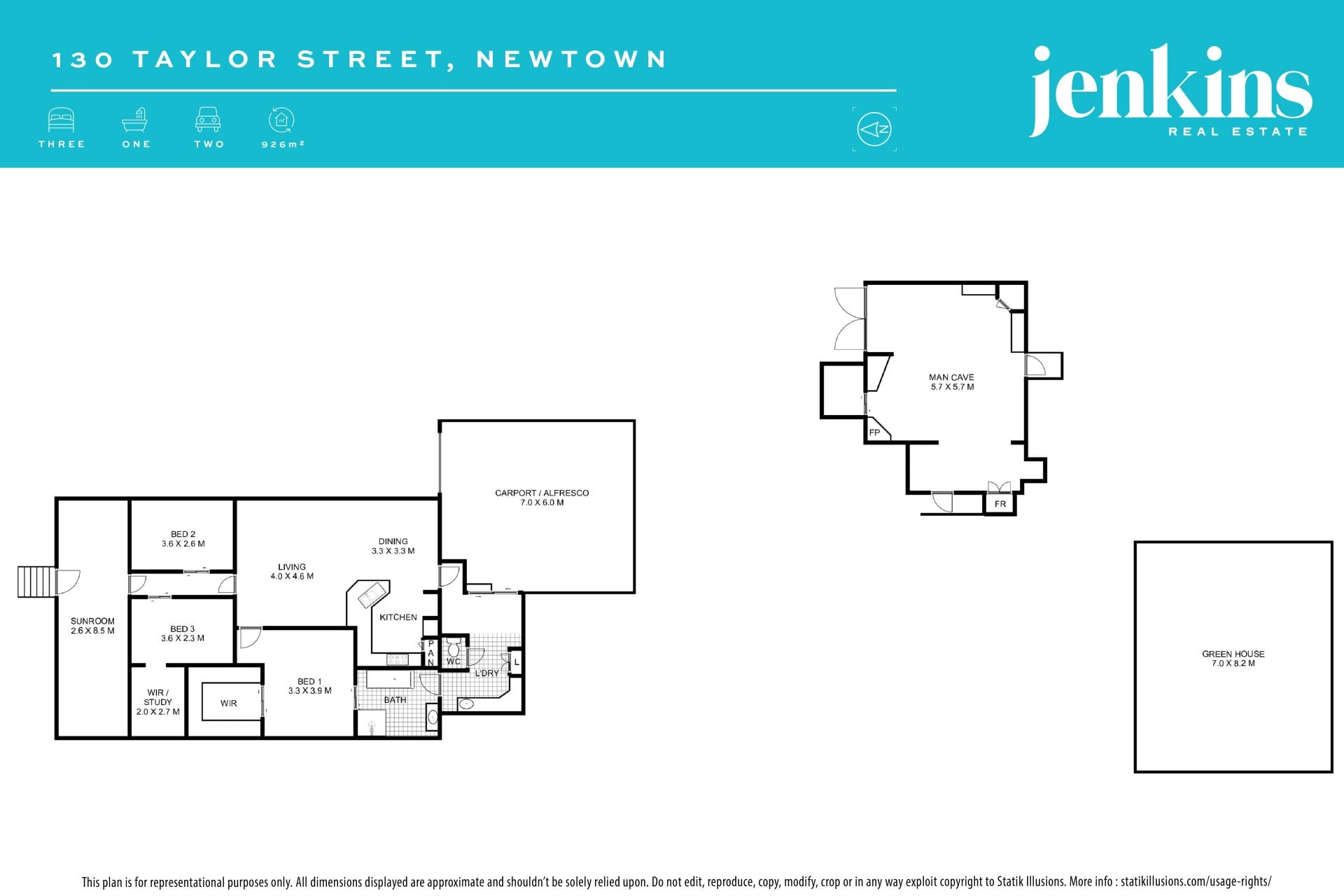 6.5m x 6.5m green house, could easily be converted into additional car accommodation (subject to council approval)
