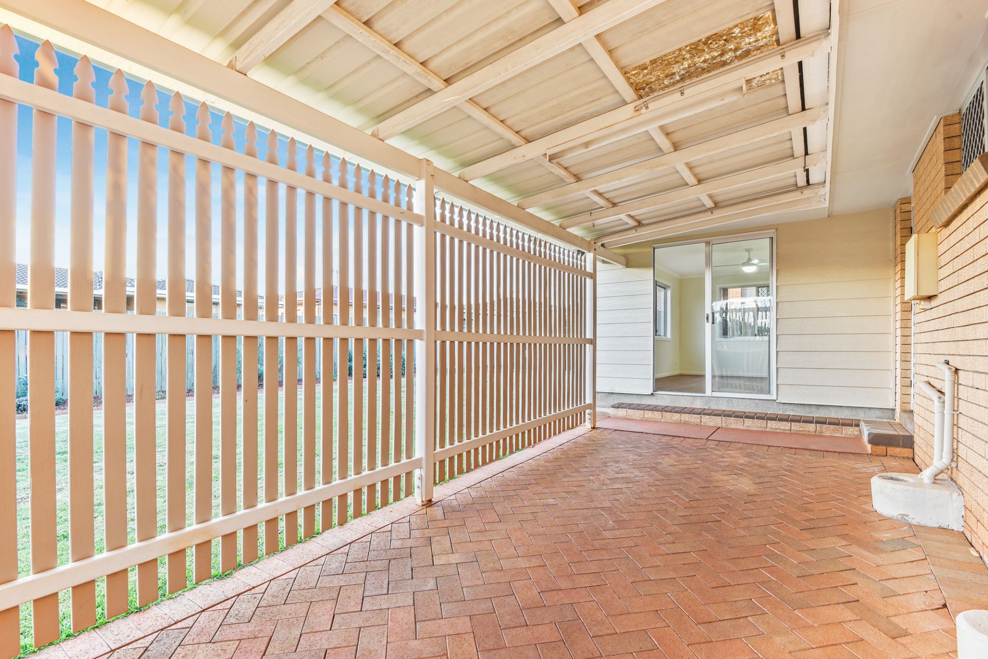 Fully fenced, level backyard with new timber fencing
