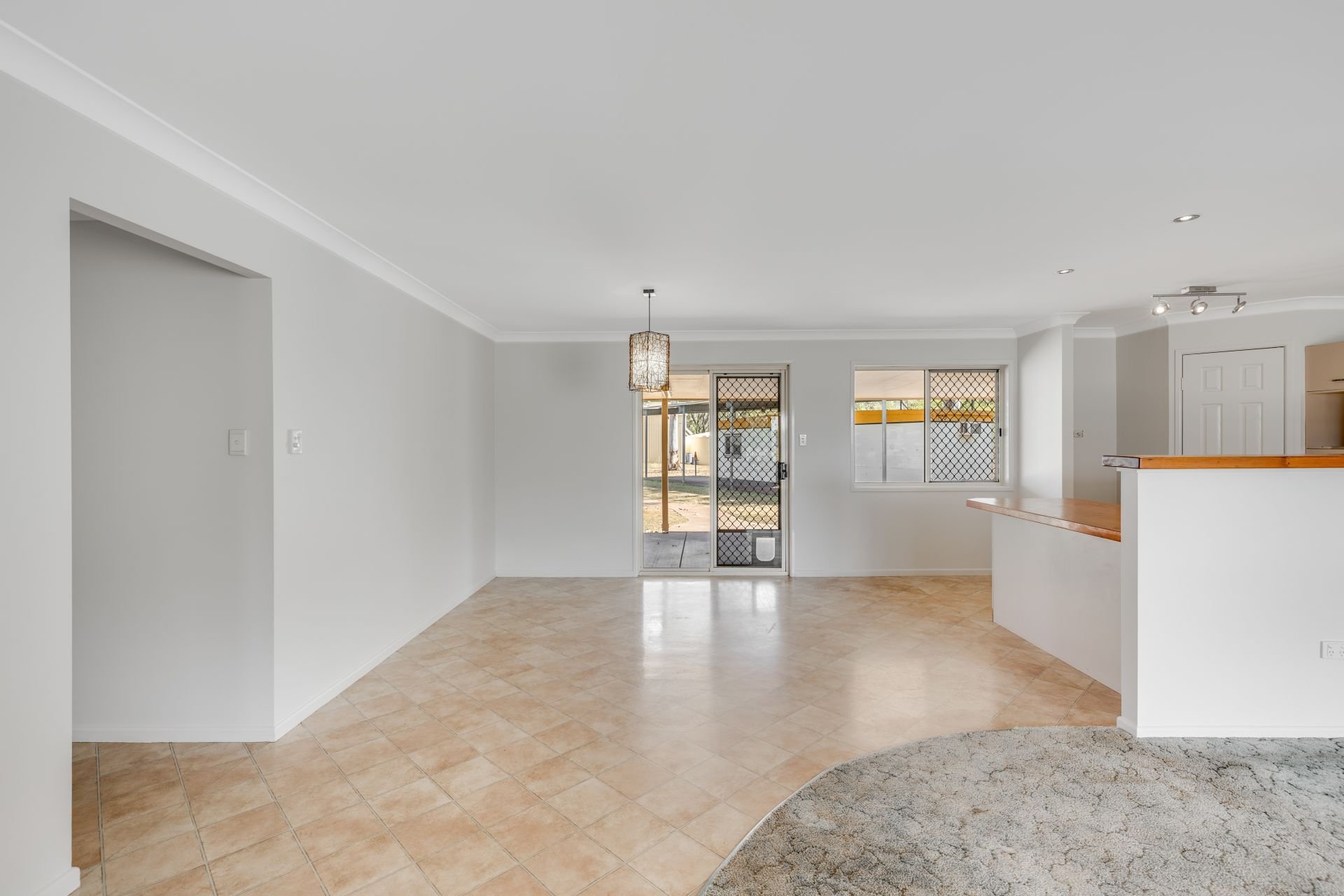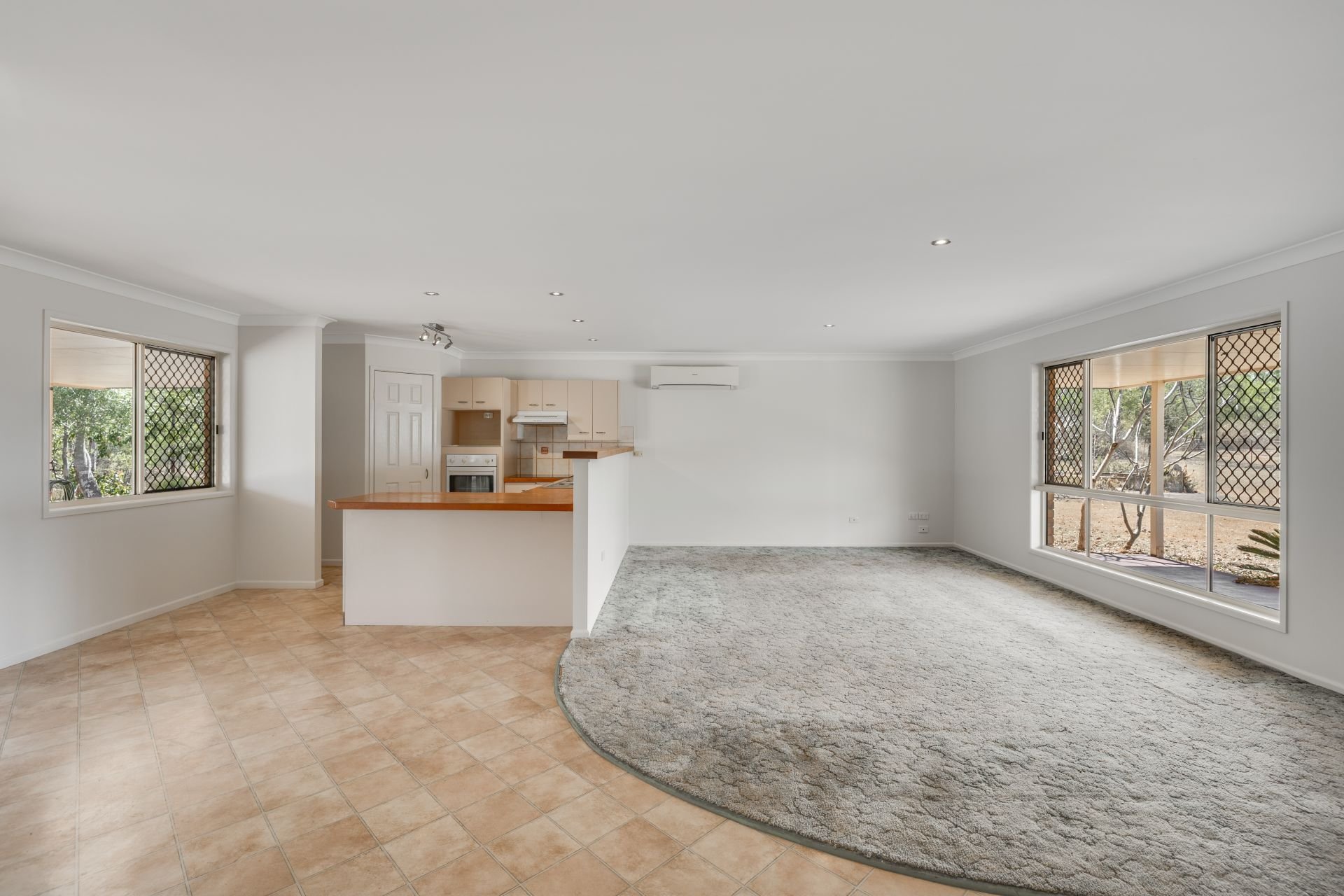 Spacious kitchen adjoining the open-plan living and dining area