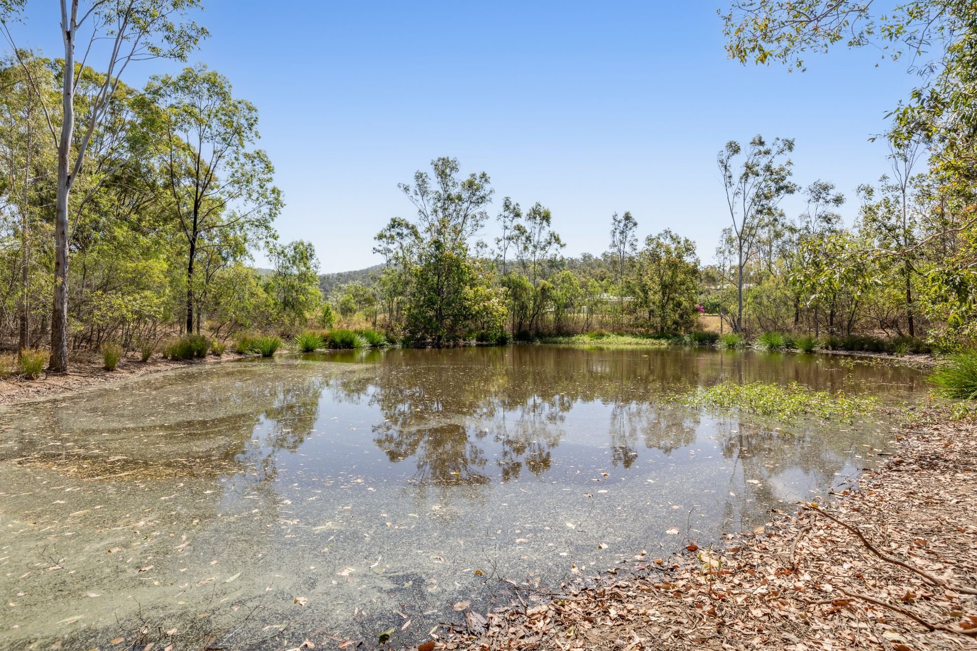 Large dam and mostly level land divided into two paddocks